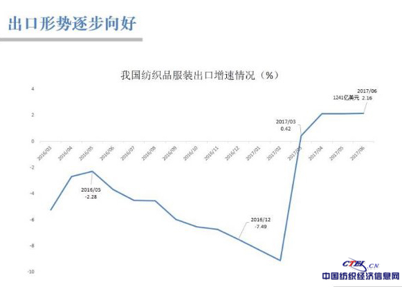 CTEI網(wǎng)訊 2017年上半年,面對綜合成本較高,國際競爭壓力較大的內(nèi)外環(huán)境,紡織行業(yè)仍堅持加快推動轉(zhuǎn)型升級,推進(jìn)智能制造和綠色制造,培育行業(yè)發(fā)展新動能。隨著供給側(cè)結(jié)構(gòu)性改革穩(wěn)步推進(jìn),“三品”戰(zhàn)略的有效實施,在國家宏觀穩(wěn)步向好、中觀動力充足的助推下,紡織行業(yè)總體呈現(xiàn)“穩(wěn)中向好、質(zhì)效領(lǐng)跑”的特征。