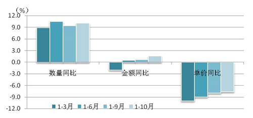 對歐盟市場出口54.22億美元,同比增長0.71%,增速較去年同期收窄了0.87個百分點,但是10月當月表現良好,出口額同比增長達8.22%,使歐盟市場累計出口額自今年以來回歸增長。