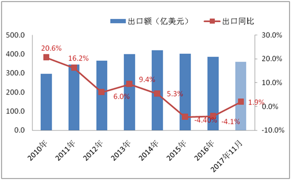 圖1 近年來(lái)家紡產(chǎn)品出口情況