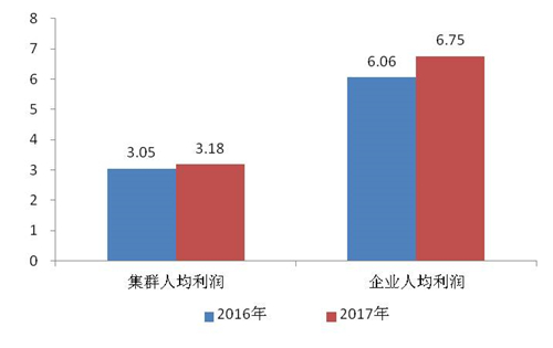 跟據(jù)協(xié)會跟蹤的數(shù)據(jù)顯示,2017年15個產(chǎn)業(yè)集群年人均主營業(yè)務(wù)收入較上年增長了2.83萬元,年人均利潤增長了0.13萬元; 210家企業(yè)年人均主營業(yè)務(wù)收入較上年增長了4.91萬元,年人均利潤總額增長了0.69萬元,兩項(xiàng)指標(biāo)均高于上年。