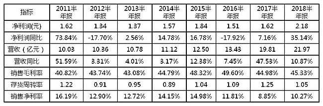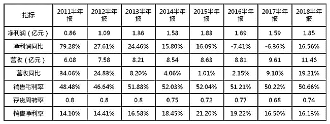 上半年,富安娜實現營業收入11.46億元,同比增長19.21%,歸屬于上市公司股東的凈利潤1.85億元,同比增長16.56%。以歷年數據來看,富安娜營業收入增速保持穩定增長,凈利潤增速本期表現良好(表12)。