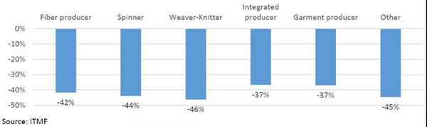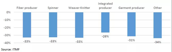 調(diào)查還顯示,自危機(jī)開(kāi)始以來(lái),紡織價(jià)值鏈各環(huán)節(jié)大多數(shù)企業(yè)不得不自行取消/推遲訂單。在紡紗行業(yè),50%的企業(yè)取消/推遲了訂單,而在織造/針織行業(yè),這一數(shù)字甚至達(dá)到83%(圖6)。