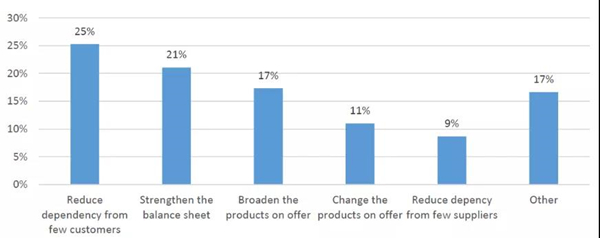 當(dāng)問(wèn)及企業(yè)從危機(jī)中吸取了哪些教訓(xùn)(圖8)時(shí),最重要的教訓(xùn)是“減少對(duì)少數(shù)客戶(hù)的依賴(lài)”(25%),其次是“加強(qiáng)資產(chǎn)負(fù)債表”(21%)和“增加可提供產(chǎn)品種類(lèi)”(17%),“改變所提供的產(chǎn)品”(11%)和“減少對(duì)少數(shù)供應(yīng)商的依賴(lài)”(9%)。