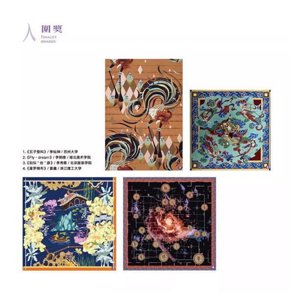 本屆大賽共收到參賽作品1562幅,經過專家評審委員會的層層遴選,最終評選出金獎1名、銀獎3名、銅獎5名、優秀獎30名、最佳創意設計應用獎5名、最佳設計題材獎5名、最佳傳統紋樣表現獎5名,入圍獎若干。下面就讓小編陪大家一起鑒賞獲獎作品吧。