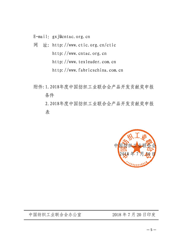 附件1:2018年度中國紡織工業聯合會產品開發貢獻獎申報條件8.doc 附件2:2018年度中國紡織工業聯合會產品開發貢獻獎申報表.xls