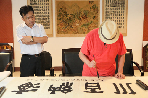 近日,東方地毯簽約畫家俞包象到集團公司做客,在參觀東方地毯文化館時,俞老先生對東方宣言、東方進行曲、東方地毯宣傳片等企業文化贊不絕口,在看到公司生產的一系列山水、人物、國畫等掛毯圖案后,俞老先生給出了"用地毯傳承中國文化"的高度評價。在東方地毯接待室,俞老先生揮毫潑墨,高瞻遠矚的雄鷹、氣勢奔騰的駿馬、栩栩如生的錦鯉、大氣磅礴<東方宣言>題詞等等,無不彰顯出俞老深厚的書畫功底,俞老對公司寄予了厚望,鼓勵公司盡早的實現"傳承東方文化,締造品位生活"的使命。