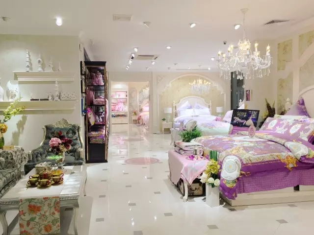 由于面積的開闊(千平大店),新增的八張展床使得店鋪整體家居氛圍更加濃厚,且根據功能需求進行了合理的分配:獨立兒童區、素雅區、純色區、幸?;閼c館、枕芯床墊體驗區、專業被芯區、傾世系列區域等一應俱全,為消費者帶來更加完善的購物體驗。