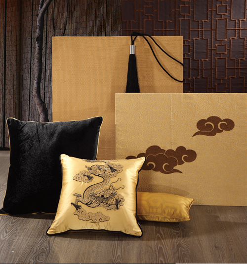 也許是因為主題性比較強,婚慶類床品是許多人愿意去嘗試的,近幾年我們看到的最多的是大的寫實花卉的。《圓·緣》這款床品用刺繡的手法,表現了現代的團花圖案,用團花來寓意團圓美滿。以活潑的點子排列,形成跳躍的條狀紋,既有秩序感又不失吸引眼球的元素,與以往婚慶床品寫實花卉形象的不同,是這款床品的團花設計手法中運用了提煉、歸納與整理,將現實中的各種花卉精髓融于一體。如果再有一些花卉元素形象上的突破會更好。