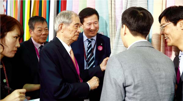 10 月20 日上午,中國(guó)紡織工業(yè)聯(lián)合會(huì)名譽(yù)會(huì)長(zhǎng)許坤元、副會(huì)長(zhǎng)楊紀(jì)朝、黨委副書(shū)記陳偉康、會(huì)長(zhǎng)助理?xiàng)钍罏I等一行參觀了本屆展會(huì)。