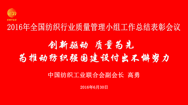 今天,2016年全國(guó)紡織行業(yè)質(zhì)量管理小組總結(jié)與表彰會(huì)議在太原召開了。首先,感謝山西紡織行辦的同志們給予的大力支持,參加QC小組成果同志們和評(píng)委專家也付出很大的努力,在此表示誠(chéng)摯的敬意。