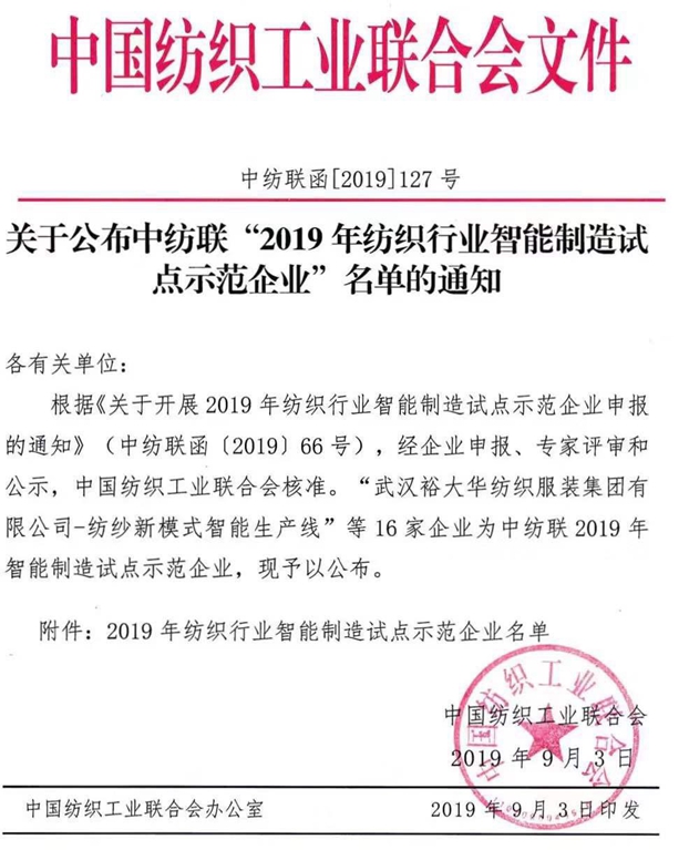 為引導行業和企業加快應用智能制造新技術,推進紡織工業智能化轉型升級,2019年度中國紡織工業智能制造大會于2019年10月10日在湖北省武漢市舉行,會議由中國紡織工業聯合會主辦,恒天集團和武漢裕大華紡織服裝集團有限公司協辦,無錫萬寶紡織機電有限公司、武漢紡織大學支持。中國紡織工業聯合會黨委書記兼秘書長高勇,中國工程院院士蔣士成、俞建勇,中國紡織工業聯合會紀委書記王久新,中國紡織工業聯合會副會長李陵申、楊兆華,中國紡織工業聯合會副秘書長、中國紡織工業聯合會科技發展部主任彭燕麗,國家工業和信息化部消費品工業司紡織處處長曹庭瑞,國家發展和改革委員會產業司協調司張曙光,國家工業信息安全發展研究中心系統所所長周劍,湖北省經信廳一級巡視員陶紅兵,武漢市發改委副主任王永勝,武漢市經信局巡視員胡沖,中紡聯和地方各行業協會相關領導,湖北省發改委、經信廳及武漢市發改委、經信廳等政府相關負責人,以及業內專家、高等院校、科研院所、企業等各界人士400余人參加會議。