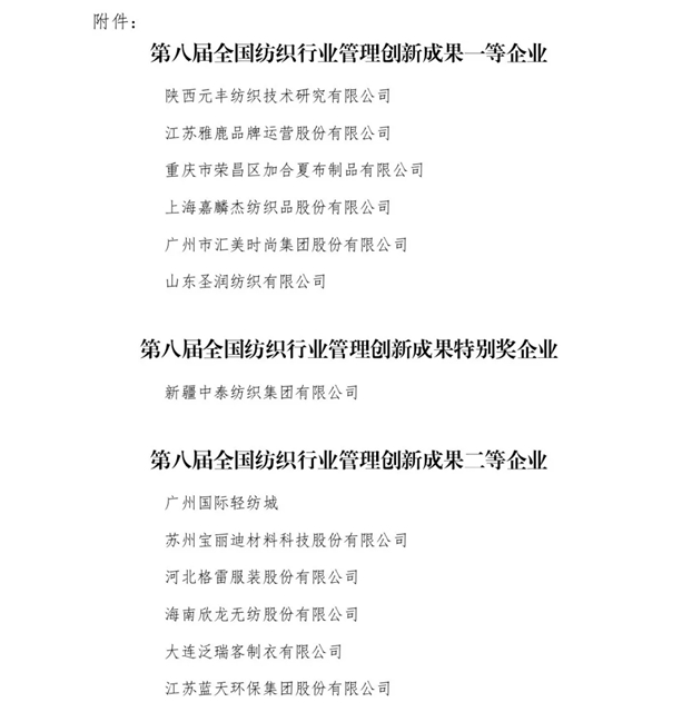 關于發(fā)布推廣第八屆全國紡織行業(yè)管理創(chuàng)新成果的決定