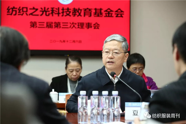 12月6日,紡織之光科技教育基金會第三屆第三次理事會在北京舉行。會議審議并通過了2019年度“紡織之光”科技獎勵、教育獎勵、針織科技獎勵、技能人才獎勵的決議;通過了設立“紡織之光科技教育基金會紡織服裝流通專項基金”的議案;會議還通過了調整理事長、調整聘任兼職副秘書長的議案。