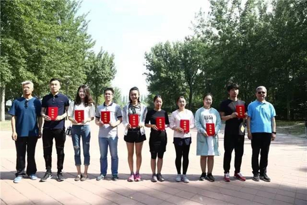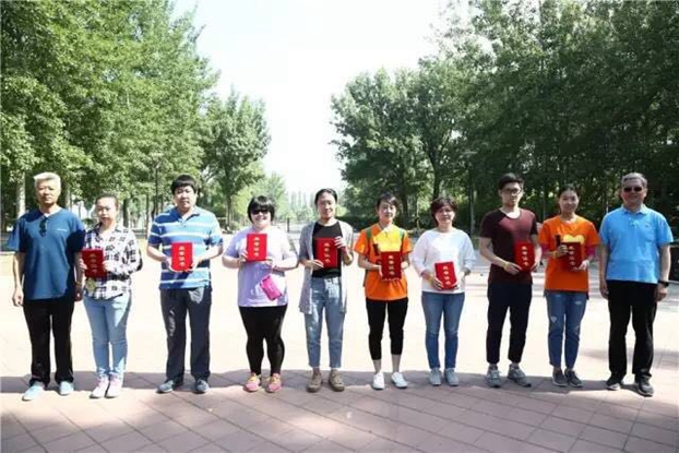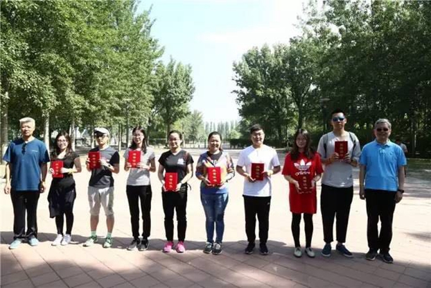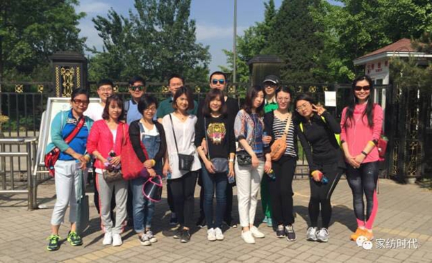 中國家紡協會成員在朝陽公園門前合影留念,朝氣蓬勃