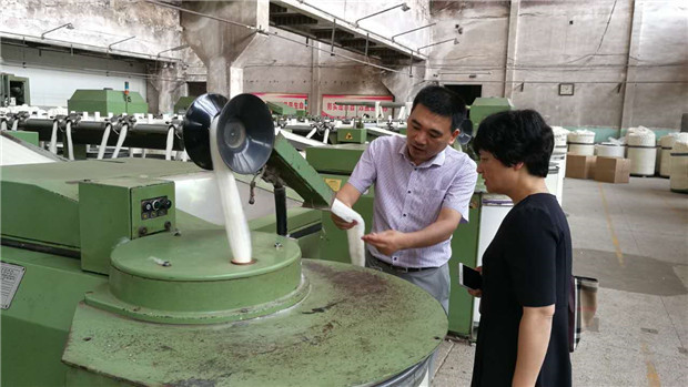 常州華吉主要經營生產碳化羊毛等系列產品,周惠中董事長在調研中介紹:華吉非常注重產品創新,在生產毛條、毛紗產品的基礎上,將自主研發的散毛預縮絲光工藝應用在羊毛被填充物上,大大提升羊毛被水洗性和防鉆絨性。近期企業又結合自身麻紡生產線,積極探索通過復合纖維形式將亞麻的優良特性應用在被類產品上。