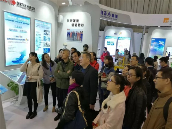 參觀團隨后在中國節能環保集團公司展位了解節能環保建筑和環境預警機器人等。