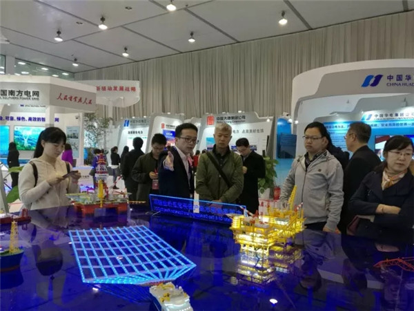 參觀團在中國海油展位上詳細了解了深水油氣田開發及作業船隊的工作原理。