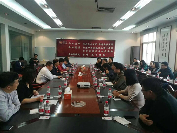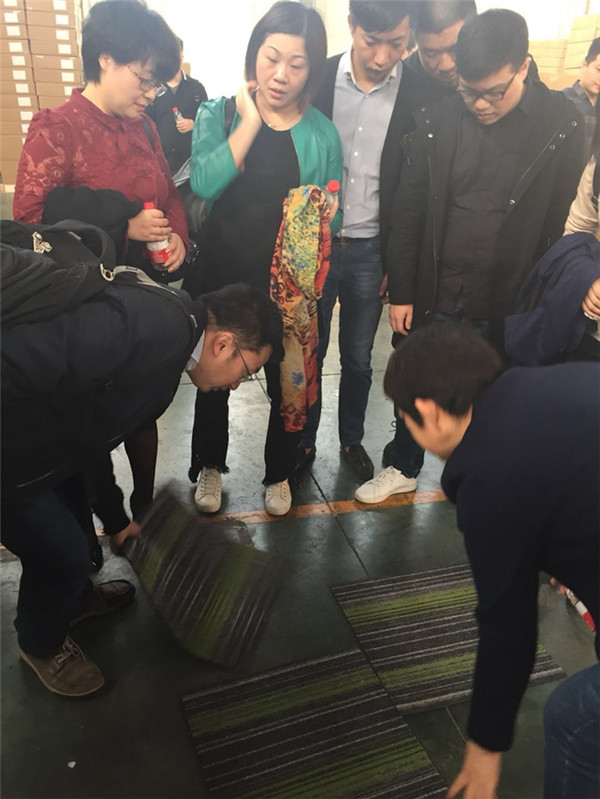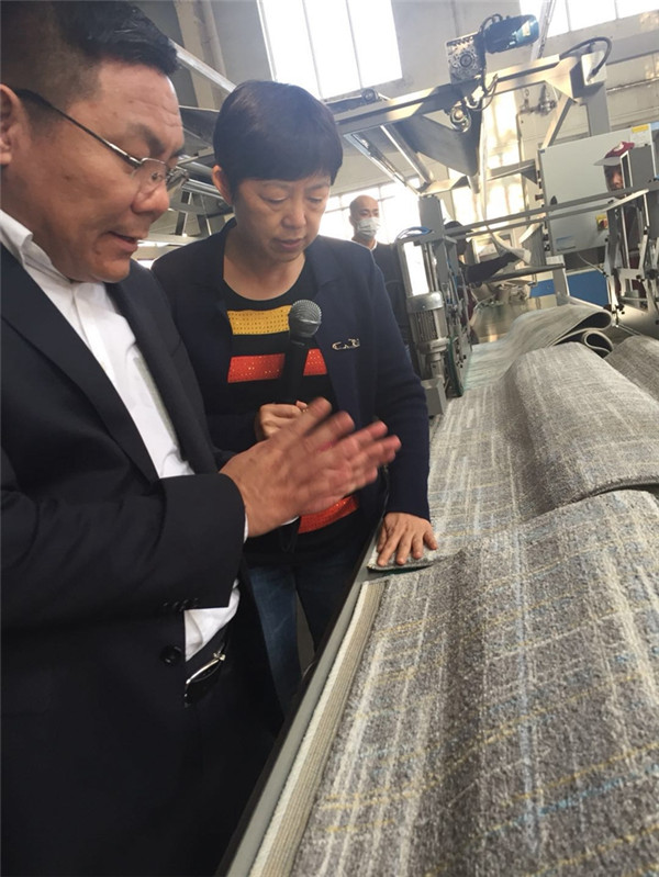 10月26日下午,在濱州市紡織行業(yè)協(xié)會秘書長、濱州東方地毯有限公司總經(jīng)理崔旗的陪同下,考察團對東方地毯集團有限公司的工廠進行了參觀并召開座談會。考察團先后參觀了東方地毯的樣品陳列間以及威爾頓、阿克明、簇絨地毯的生產(chǎn)流水線。解說員向青年企業(yè)家們詳細介紹了各種類型地毯的生產(chǎn)工藝和用途。