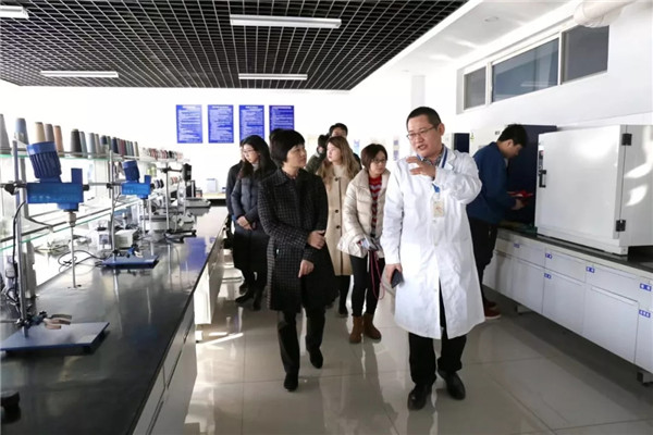 研究院院長孫紅玉在給大家講解了研究院的研究成果之后,和大家一起在研究院參觀了廢舊紡織品回收利用的成果、功能性面料開發、印染助劑的制造以及資源回收利用制作成輪胎的產業化成果等。品牌總經理高鵬、實驗室主任楊玉華帶領學習團一行參觀了實驗室,并觀看了資深研究員做的色牢度檢驗、縮水率檢驗、起毛起球檢驗、甲醛及PH值檢測等項目,以高標準嚴要求檢測每一件出廠產品。