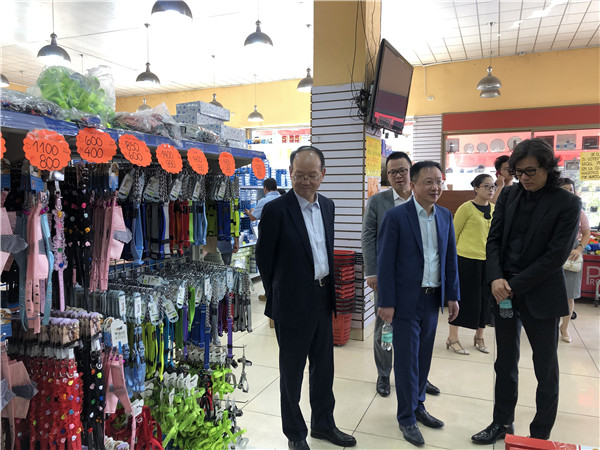 甫一抵達圣地亞哥,高勇書記一行就在智利江蘇總商會郁平副會長等人的陪同下來到華商商業聚集區參觀考察。據郁會長等介紹:此商業區由幾千家華商自發聚集而成,經營范圍從紡織品到各類百貨,經營面積達到幾十萬平方米,貿易覆蓋整個智利并延伸至厄瓜多爾和秘魯等國。不僅為當地提供了大量的就業崗位,也拉動了當地的經濟發展。據悉,智利政府將在此華商商業聚集區的基礎上規劃建設唐人街,為在智利的華商華人提供更多的條件和便利。