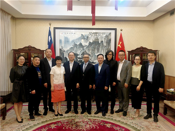 高??書記率團拜會中國駐智利大使館徐步大使,政務參贊周儀、經商參贊劉如濤等參加了會談。高勇書記向徐大使介紹了中國紡織品的產能和出口情況,以及出訪團此次“走出去”的目的:“拉美地區的市場很大,但中國紡織品的市場份額相對較小,尤其是中國的紡織制造業在拉美還是空白。現今中國的紡織已經遠遠不是傳統制造業的概念,很多技術已是世界最先進的水平,完全具備走出去的能力,中國紡織業已向外拓展至非洲、東南亞、甚至在美國建廠。國內的企業家們對開拓拉美市場有興趣和需求,希望通過這次出訪團在拉美的考察,能夠和我駐外部門一起,為國內的紡織企業進入拉美開辟出道路。”